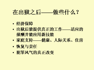 犯人需要恢复自尊,当有机会在监狱里做一些真正的有偿工作时,这是一个获得基本文学技能和在工厂和办公室工作的能力的好机会。犯人可以珍惜他的出狱,继续支持他的家庭,并做出贡献用以监狱的开销。