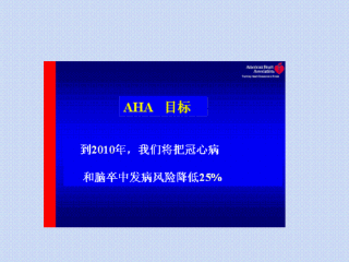 到2010年,我们将把冠心病,中风和发病风险降低25%。俩个战略体系正在建立去实现这个目标,其一是实施美国心脏协会的主要和二级预防指南,