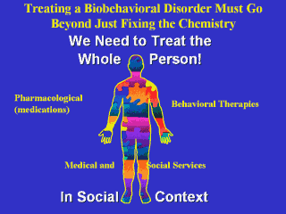 | Addiction requires treatment that addresses its complexity. Substance abuse treatment should address the whole person and can include medications, behavioral therapies, and ancillary support services. |