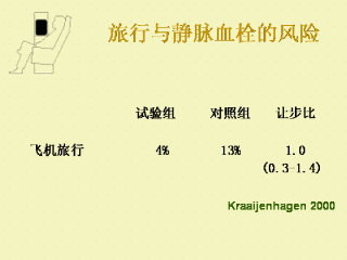 另一份由Kraaijenhangen主持的实验报告则得出了完全相反的结论。而且,就这个问题研究的两份最新报告也是彼此矛盾的。Samana报告说,患DVT的人与对照组相比有更高的出行率(让步比:2.35(1.45---3.8)),而Arya则报道了大小为1.3的让步比(0.6---2.8)。