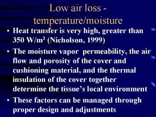 climate at the skin-cover interface . Low air loss devices have been shown to prevent