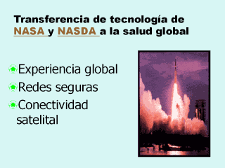 LA agencia del espacio de los EUA, y la agencia espacial japonesa han sido de mucha ayuda en el desarrollo de la Red de Salud Global.