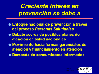 Como el enfoque en atención a la salud se ha movido de tratar infecciones bacterianas a entender las causas de enfermedades crónicas, hay gran conciencia que estas enfermedades pueden ser prevenidas. Sin embargo, la reforma de atención en salud es una de las primeras veces que el público americano escuchó acerca del concepto de prevención y promoción de hábitos saludables. Casi al mismo tiempo en el inicio de los 1990’s, manejo de la atención había llegado con énfasis en cambios para que la gente esté bien.