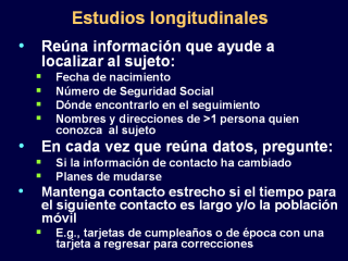 vivienda; “alguien que siempre sepa donde está” Intente algunas estrategias simultáneamente para localizar a los sujetos Intente algunas estrategias repetidamente Teléfono puede estar reconectado Parientes pueden saber del sujeto Cada sujeto es importante |