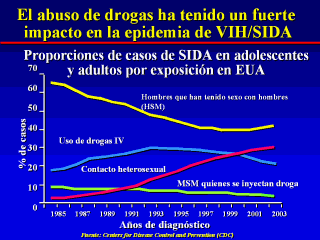 de VIH que ocurre a través de uso de inyección de drogas (línea azul). |