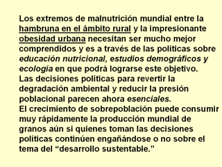 Dallas, Texas. Las leyes ambientales y las políticas de población nos deberían proteger de los alimentos de conveniencia. El profesor en leyes John Banzhaf de la Universidad George Washington ha dicho “Pienso que cuando las compañías productoras de alimentos de conveniencia deliberadamente no están dando la información importante al tema, ellas son legal y moralmente responsables.” Los daños son en la forma de obesidad, y la compañía McDonalds ha perdido varios caos en la corte. Véanse más información sobre este caso en la red http://banzhaf.net http://banzhaf.net/obesitylinks La obesidad tiene un costo para la economía de los EEUUAA de más de $117 billones al año, justo abajo del costo por fumar de $130 billones. Léanse: Entendiendo la Obesidad a través de Sociología, Understanding Obesity through Sociology http://www.pitt.edu/~super1/lecture/lec16581/index.htm así cómo la lectura sobre obesidad y enfermedades cardíacas: Obesity and CHD http://www.pitt.edu/~super1/lecture/lec5311/index.htm |