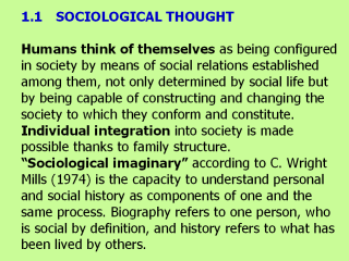 another, but it is always social device. The concept of social actor refers to the characteristics that the individual, who plays a specifically determined role in society, must possess. One of the economy‘s function is to produce and distribute the resources needed for education. Education forms and enables persons to play an economic role in society through their professional functional job. When the relationship between society and its economy is satisfactory, then the purpose of both is fulfilled. The action of an individual is what makes society change. In our society one of the main orientations for change is economic development, to be able to have greater individual income and therefore to be able to obtain more and better material goods. One of the meanings of sociology is to set a distance on our own personal interpretations, in order to be able to look at the social influences that are shaping our lives. To learn sociology is in part a research process in itself. We live in a world that is marked by the possibility of nuclear war, the destruction of our natural surroundings by technological development, air and water pollution, food shortage and overpopulation. But, we also have the possibility to control our own destiny and shape our own lives for the better. |