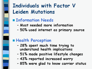 healthcare providers to obtain information about Factor V Leiden 77% of the