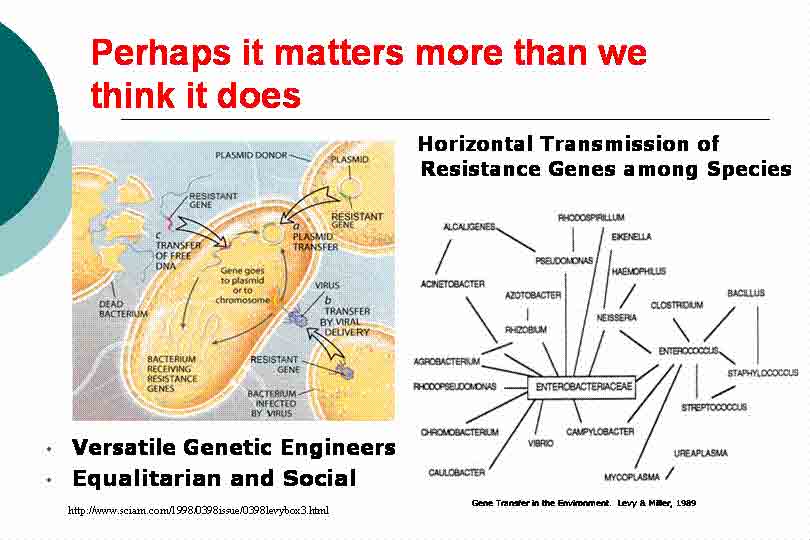 Horizontal Transfer of Resistance Genes by plasmids, integrons,