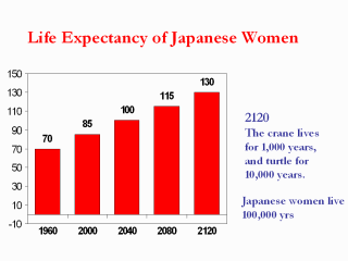 | If we estimate forward, by the year 2120 Japanese women will be almost immortal. |