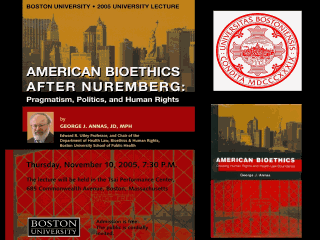 | This lecture in print. ("American Bioethics after Nuremberg: Pragmatism, Politics & Human Rights," by George J.Annas, Boston University, Nov. 2005) |