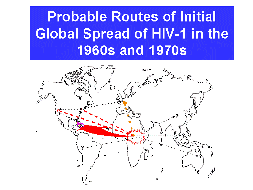 the 1960s and 1970s,"sparks" of HIV infected persons traveled out of Africa