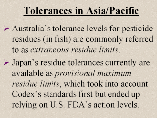 region, Australia’s tolerance levels for pesticide residues in fish are