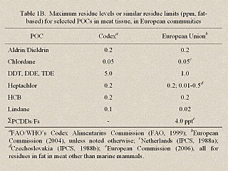 kg of fat), except for dioxins (PCDDs/PCDFs) for which the limits are
