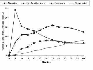 | Snus is capable of delivering a nicotine boost of at least 10 ng/ml within 10 minutes – which is significantly more than typical NRT products. This good necotine delivery is likely part of the reason snus has been able to compete with cigarettes in Sweden (and help smokers to quit smoking). |