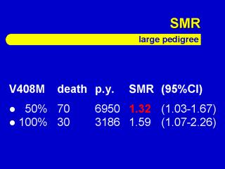 persons with 50% probability of being affected. The overall SMR was 1.32 (n=250). Analysis