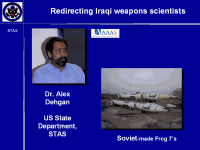 Dr. Alex Dehgan joined the State Department as a AAAS fellow, as well. Dr. Dehgan holds a law degree from the University of California as well as a Ph.D. in Evolutionary Biology from the University of Chicago. Soon after joining the State Department, he found himself in Iraq working to identify and redirect former weapons scientists into civilian research. Dodging bombs and attacks in and out of the Green Zone, Dr. Dehgan helped Iraqi scientists to establish a natural history museum. He quickly realized that with libraries destroyed, Iraqi scientists and engineers were cut off from science.