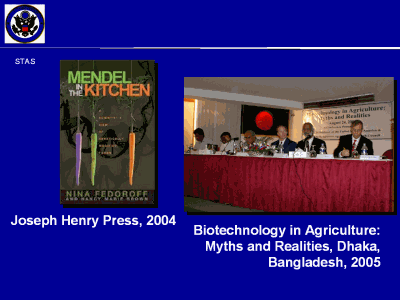 Whether it is water for people or water for agriculture, land for food or land for biofuels, we are rapidly approaching the limits of what our planet can support. The only alternative to fighting over water is working together to distribute it fairly and utilize it in increasingly efficient ways through science and technology. The only alternative to higher food prices and progressive deforestation is to use contemporary science, including molecular modification, to increase the productivity of the land we already farm and decrease its water demands. Problem-solving is best, of course, when the most up-to-date knowledge and technology are part of the solution. And in this context, there is plenty of room for both science and diplomacy. Those of you who, like me, have engaged in some of the idealogical battles over contemporary genetic modification of crop plants know that it takes much more than just the facts to change peoples’ minds and attitudes. My own appreciation of the importance of science diplomacy deepened after I wrote a book on GMOs in which I sought to explain the science behind the contemporary molecular modification of crop plants. Shortly after it was published in 2004, I received an email from a Foreign Service Officer in the American Embassy in Dhaka, Bangladesh asking me to come and speak about GMOs. Bangladesh is a poor country with a small area of arable land, often submerged by flood waters. Government officials found the differences in attitude between Europe and the U. S. confusing and had not developed a policy toward GM crops. Our embassy invited several speakers to address the scientific basis of GM crops and speak about both the real – and the perceived – risks that they posed. *The conference was attended by government officials, scientists, diplomats and the press. It opened channels of communication between scientists in Bangladesh and scientists in the US and Europe. As well, it opened discussions between scientists, reporters and politicians – an immensely important dialog in moving forward with a controversial technology. |