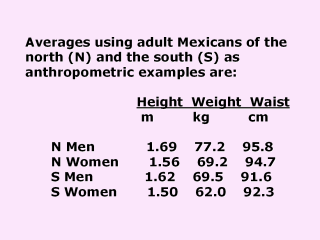 persons are overweight. W/H²= BMI, Body Mass Index. Example N Men has 27 BMI