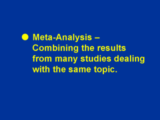 | Meta-analysis falls under a broader classification of reviews known as systematic reviews. In general, there are two types of systematic reviews, (1) quantitative (meta-analysis), and (2) qualitative. Both types of reviews follow the same rigorous steps, which you’ll learn about next, EXCEPT that a qualitative review does not combine the endpoints for statistical analysis, usually because it’s not appropriate to combine them into any type of common metric. |