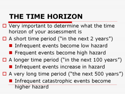 Determining the time horizon of your hazard assessment determines the