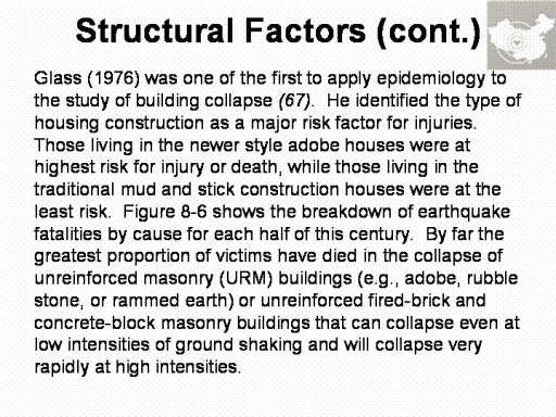 collapsing, these heavy walls and roofs tend to kill many of the people in
