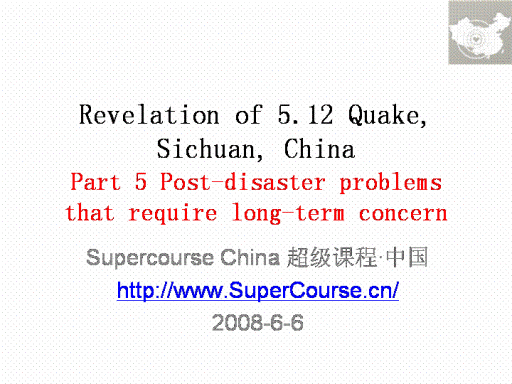 1) JIT program of Sichuan Earthquake, Supercourse