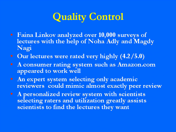 scientists are best able to find the lectures that they want.