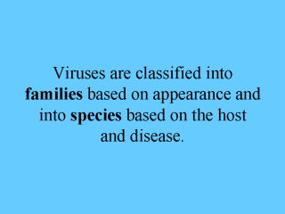 equine influenza virus is in the orthomyxoviridae family. Families do not just aid identification but their members have common disease and control mechanisms. Some families have been split into subfamilies or genera e.g. canine distemper virus is in the morbillivirus genus in the paramyxoviridae family. These will only be considered if useful. |