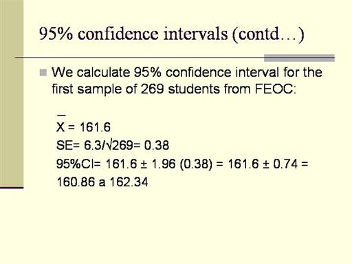 I have 95% of confidence that the true mean in the population is between 160.86 and 162.34.