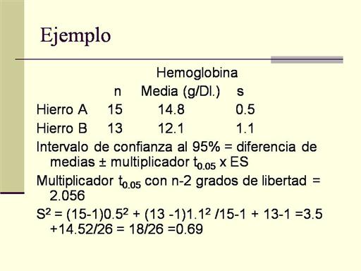 En grados de libertad es n-2 ya que son dos muestras independientes. Con inferencias para una media es n - 1. |