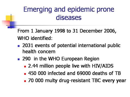 •- the recurrence of well-characterized outbreak-prone diseases: cholera,