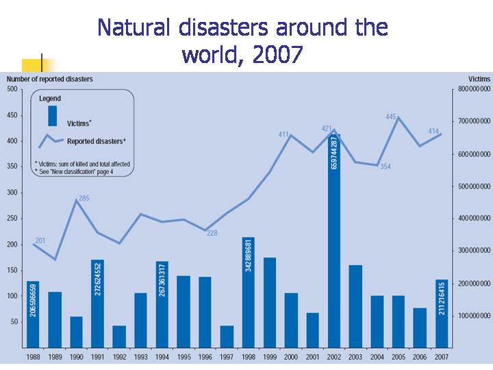 mainly economic rather than human. Indeed, the 65 disasters reported in