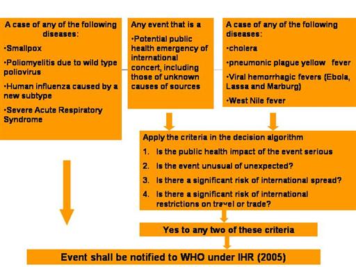 diseases and events that shall be notified to WHO under IHR (2005) and