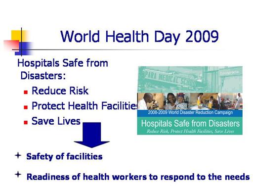 marks the important of the safe hospitals around the world. The motto of