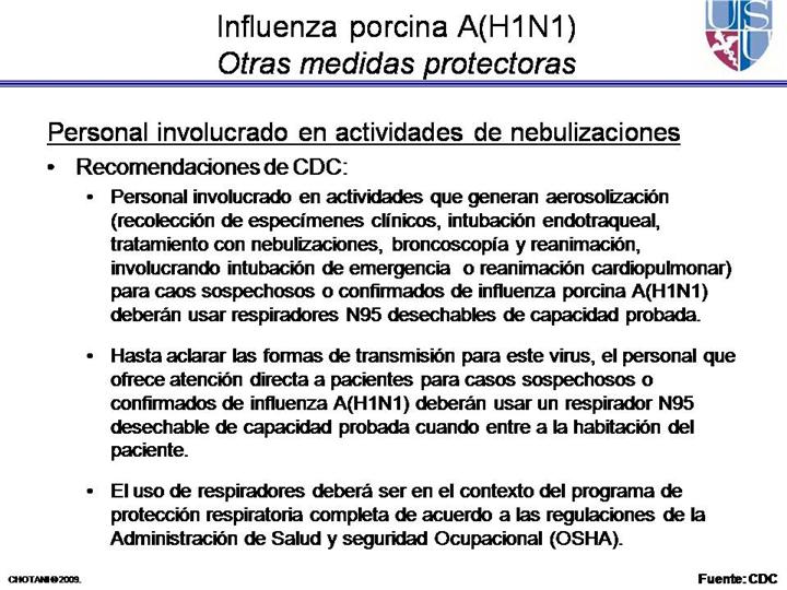 El personal deberá estar médicamente sano, entrenado en uso de respiradores y probada su capacidad, incluyendo: uso de respiradores, pruebas de capacidades, remoción y desecho seguro y contraindicaciones médicas de uso de respiradores. Información sobre programas de protección respiratoria y procedimientos de prueba de capacidades puede ser accesada en www.osha.gov/SLTC/etools/respiratory