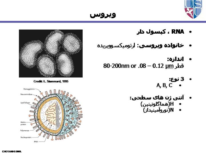 آنتی ژنهای داخلی( پروتئین های 1M و NP( ,پروتئین های(آنتي ژن هاي) مخصوص هر نوع هستند و برای تعیین اینکه یک ویروس خاص ,نوع A , B ,یا C میباشد به کار میروند. پروتئین های 1M همه اعضا هر نوع با هم واکنش متقاطع نشان میدهند. پروتئین های NP هر نوع نیز با هم واکنش متقاطع نشان میدهند. آنتی ژنهای خارجی(HA ,NA) تنوع بیشتری نشان میدهند و برای زیرگروه و گونه اختصاصی هستند , و برای تعیین گونه اختصاصی آنفلوانزای A مسئول یک طغیان به کار میروند. گونه هاي آنفولانزا بر اساس انواع آنتی ژنهای سطحي هماگلوتینین و نوروآمینیداز شان نام گذاري مي شوند؛ مثلاً H3N2 براي گونه ي با هماگلوتینین 3و نوروآمینیداز 2 . اگر دو گونه ي ويروس آنفولانزا هم زمان يك سلول را آلوده كنند، پروتئین های كپسيد و كپسول آنها باز مي شود و RNA آنها به mRNA ترجمه ميشود. آن گاه سلول ميزبان ويروس ها ي جديدي با آنتي ژنهای تركيبي ايجاد مي كند؛ مثلاً H3N2و H5N1 مي توانند H5N2 ايجاد كنند. از آنجا كه سيستم ايمني انسان در شناسايي اين گونه جديد مشكا خواهد داشت، گونه جديد مي تواند بسيار خطرناك باشد. |