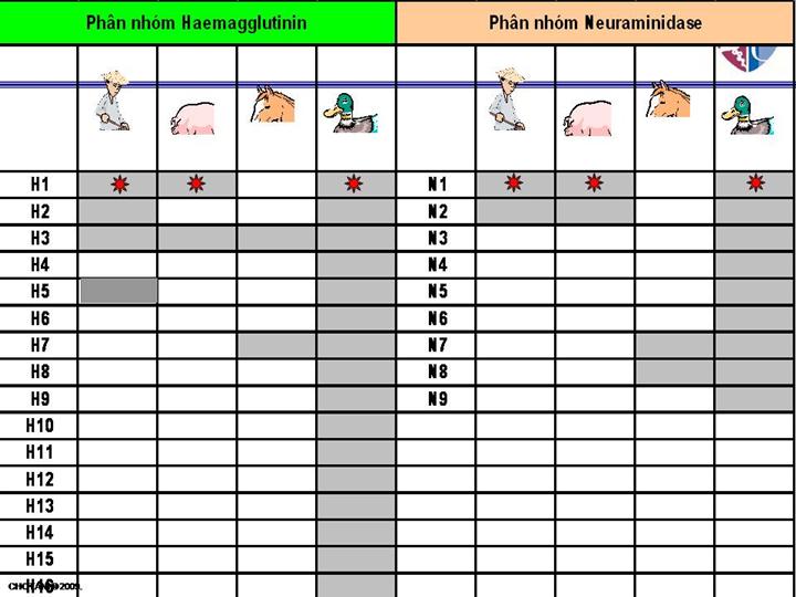 Hiện có 16 phân nhóm haemaglutinin và 9 phân nhóm neuraminidase khác nhau, tất cả đều đã được tìm thấy trong các virus cúm A ở chim hoang dã.