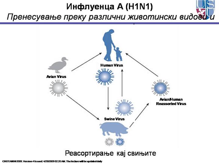 Реасортирање значи измена на DNA меѓу два или повеќе вирусите внатре, во клетката на домаќинот. Два или повеќе вируси од различен сој (но вообичаено од ист тип) инфицираат една клетка и го здружуваат нивниот генетски материјал креирајќи генетски различни патогени вируси. Тоа е тип на генетска рекомбинација. Реасортирањето може да води кон генетски шифт под истите околности. |