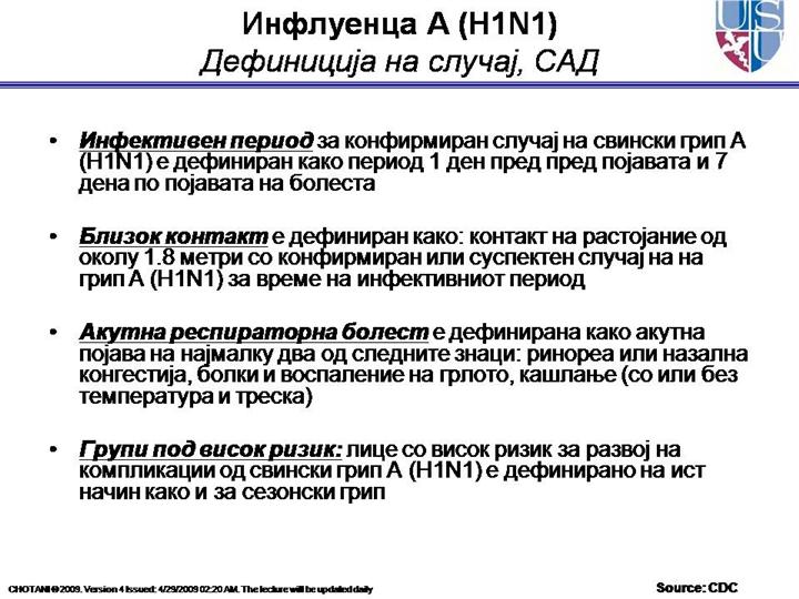 Литература: ММWR: Prevention and control of Influenza: Recommendation of the advisory Committee on Immunization Practices (ACIP), 2008. |
