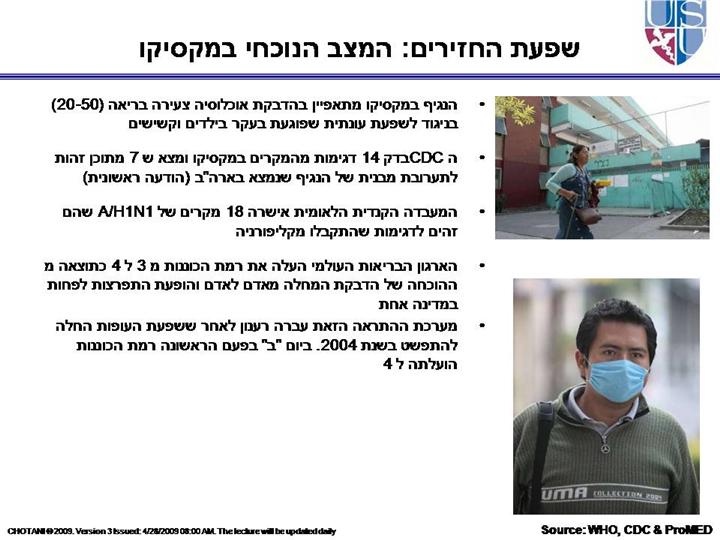 Overview of WHO’s Pandemic Alert Levels Phase 3 of the pandemic alert period is when there are human infections with a new sub-type, but there is no human-to-human spread (or at least very rare instances of spread to a close contact). At this point, the new virus subtype must be characterized rapidly to ensure early detection, notification and response of additional cases. Phase 4 may occur when there are small clusters (e.g., <25 human cases lasting <2 weeks) with limited human-to-human transmission, but spread is highly localized (which suggests the virus does not adapt well to humans). During this phase, WHO describes a variety of measures (such as targeted use of antiviral medications) aimed at containing the virus within a limited area or to delay spread to buy time to implement preparedness measures, such as vaccine development. Phase 5 may occur when there are large clusters (e.g., 25-50 cases lasting 2 to 4 weeks), but human-to-human spread is still localized. The virus may not yet be fully transmissible. At this point, it is imperative to continue efforts to contain or delay spread of the virus, to both avert a pandemic and to implement pandemic response measures. Phase 6 is when transmission to the general population has increased and is sustained, meaning there is a pandemic. All efforts to minimize the impacts of the pandemic are necessary at this time. |