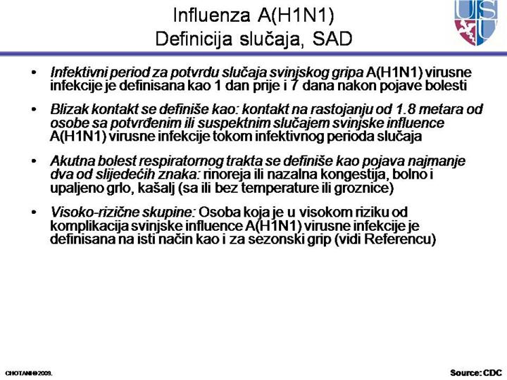 Reference: MMWR: Prevencija i kontrola influence: Preporuke Savjetodavnog Komiteta za Imunizaciju u Praksi (ACIP), 2008.