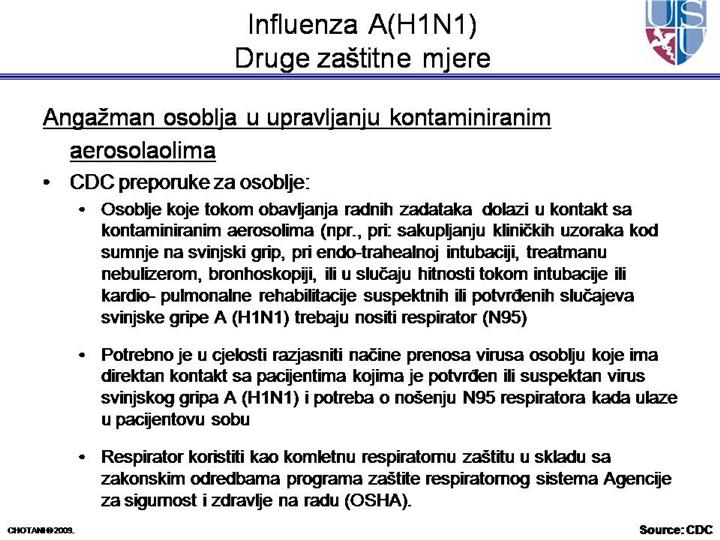 Osoblje trerba biti zdfravo i dobro obučpeno za korištenje respratora, uključujući – pravilno testiranje upotrebe respiratora. Informacije o respiratoru i procedurama rukovanja respiratorom možete naći na www.osha.gov/SLTC/etools/respiratory |
