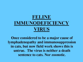 A lentivirus. Unrelated to HIV. The virus can be isolated in T cell lines which become IF-positive, then die. Isolates vary not only in virulence but also antigenically. Tenfold difference in VN titre and no vaccinal protection between USA prototype (Petulama) and a British isolate (Hayling Island). |