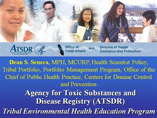 Good Morning, My name is Dean Seneca and I am here from the Office of Tribal Affairs at the Agency for Toxic Substances and Disease Registry (ATSDR). |