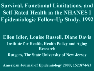 | The most recent report from our research group advances on previous research by adding a second endpoint (ADL/IADL disability) to the mortality analysis. It also focuses on gender differences in the findings. |