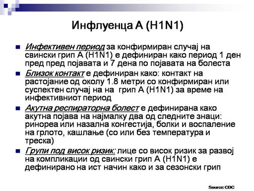 Литература: ММWR: Prevention and control of Influenza: Recommendation of the advisory Committee on Immunization Practices (ACIP), 2008. |