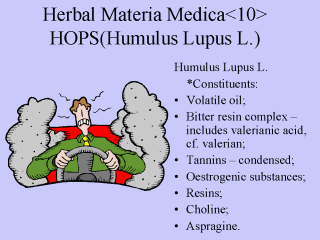 nervous activity (good for visceral tension in the body). Hops is most useful for