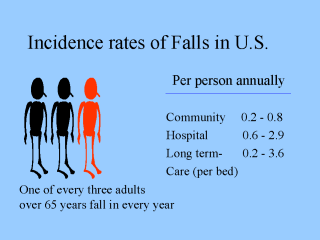substantially higher in hospitals and nursing homes as of 1.5 falls per bed per year