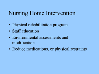 interventions. Physical restraints often used in nursing home setting. However restraints
